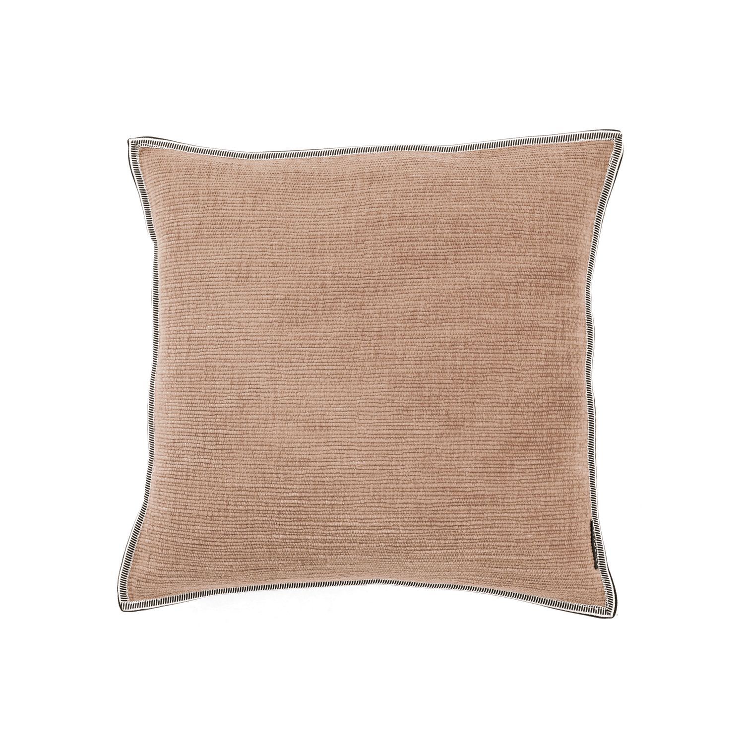 A square cushion in a luxurious, textured linen cotton blend fabric. Co-ordinated with a natural coloured, plain linen on the reverse and braided piping. All Casamance cushions come complete with a feather filled inner pad.
