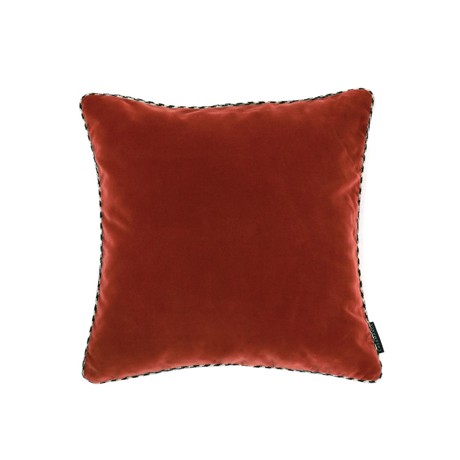A square cushion in soft and sumptuous velvet with braided piping. All Casamance cushions come complete with a feather filled inner pad.
