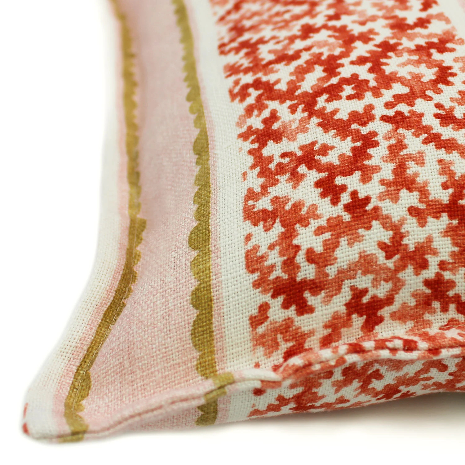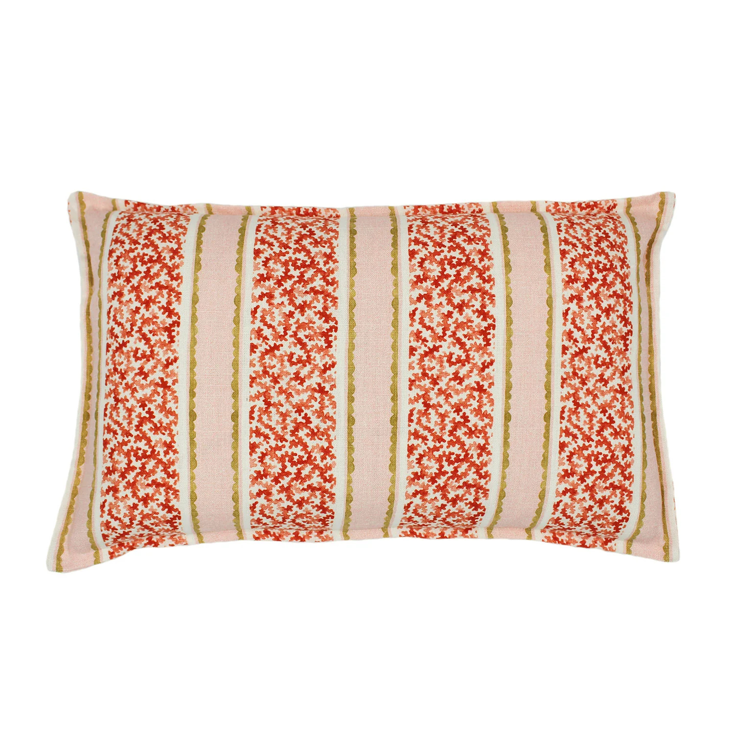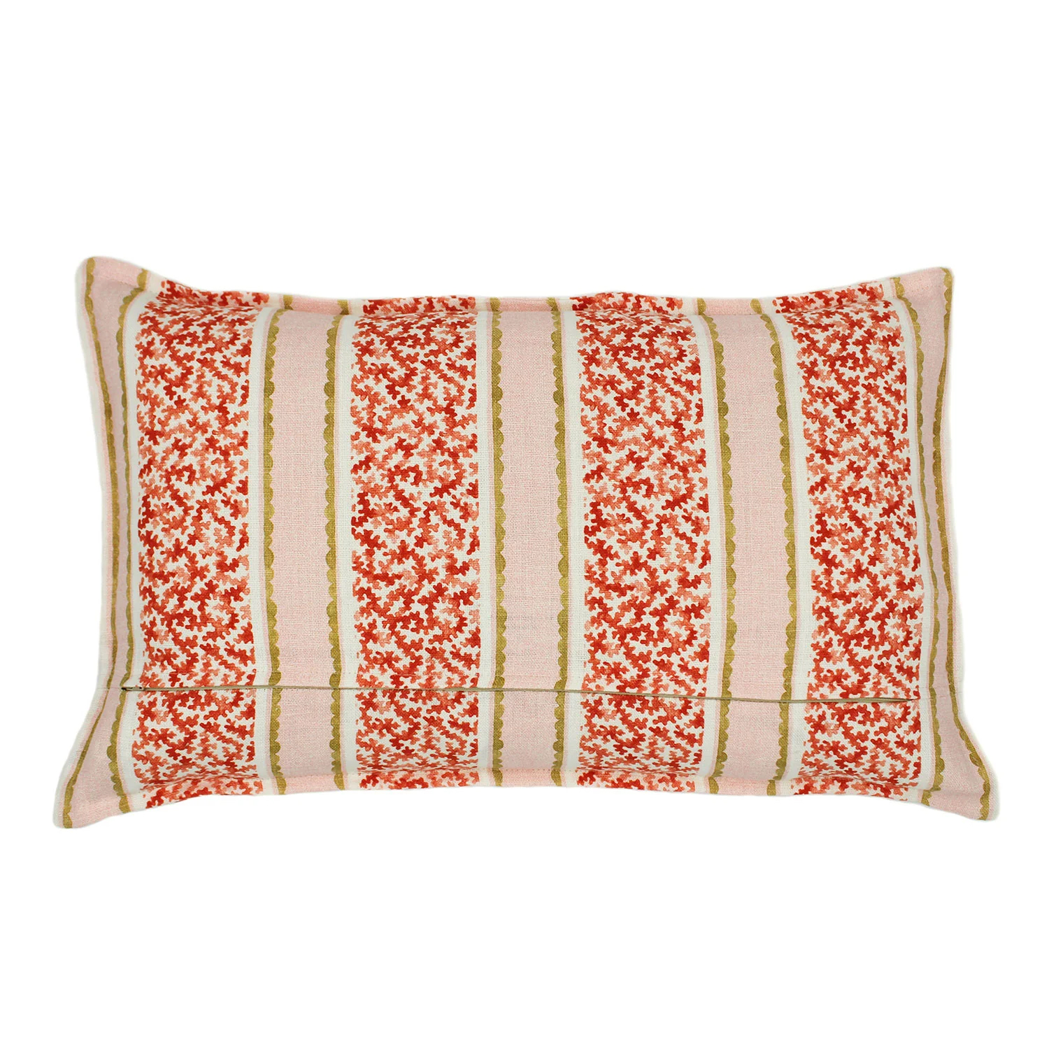 A fabulous large lumbar cushion made from soft, 100% linen featuring a colourful coral print design on both sides with a decorative edge. Ideal for adding a touch of colour and comfort to any sofa or chair. All Linwood cushions come complete with a feather filled inner pad.