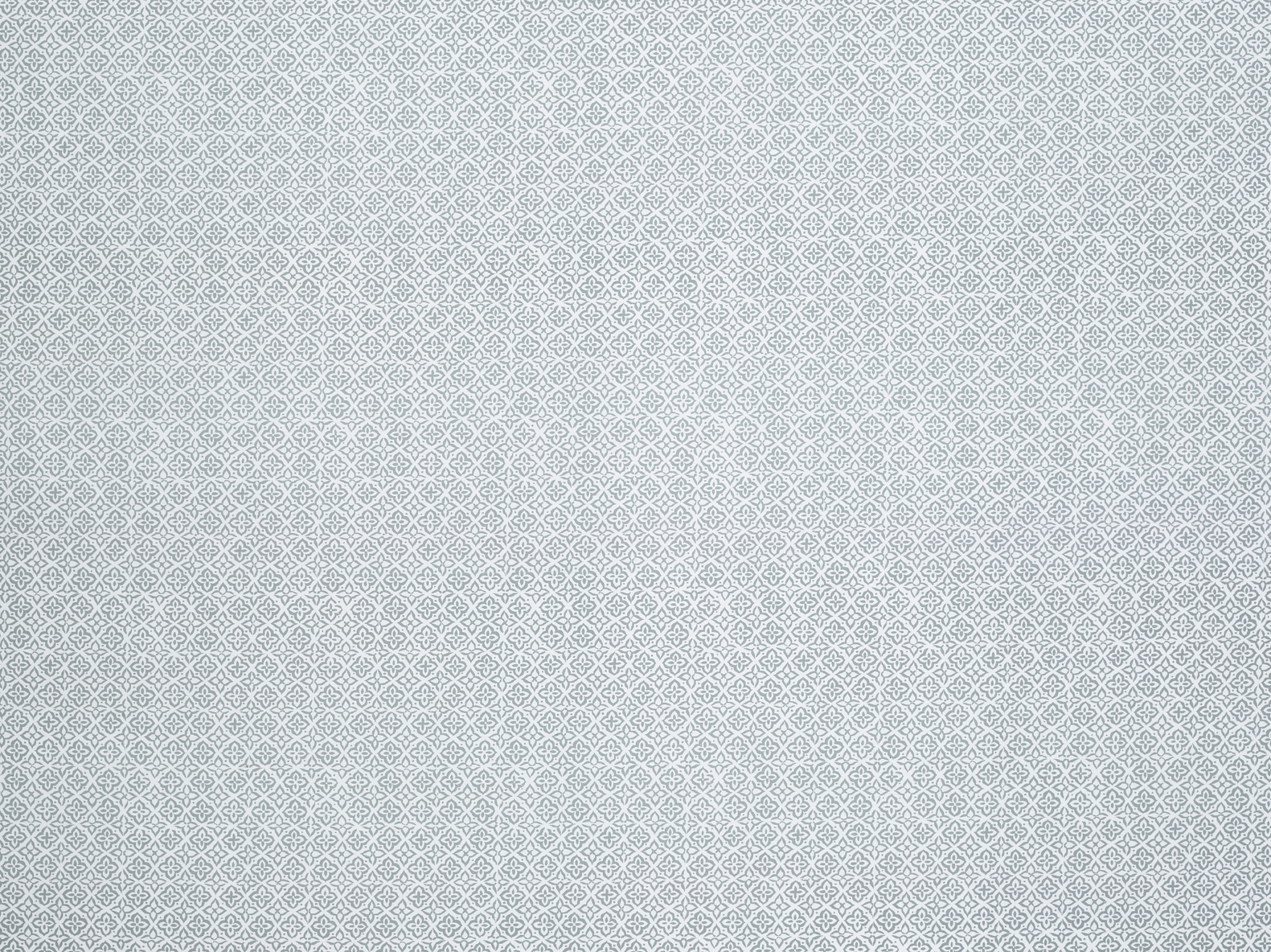 A coated, cotton fabric suitable for tablecloths with a small scale motif reminiscent of Portuguese decorative tiles. This wipeable fabric has an acrylic coating which make the fabric water repellent and prevents most stains from penetrating the fabric.