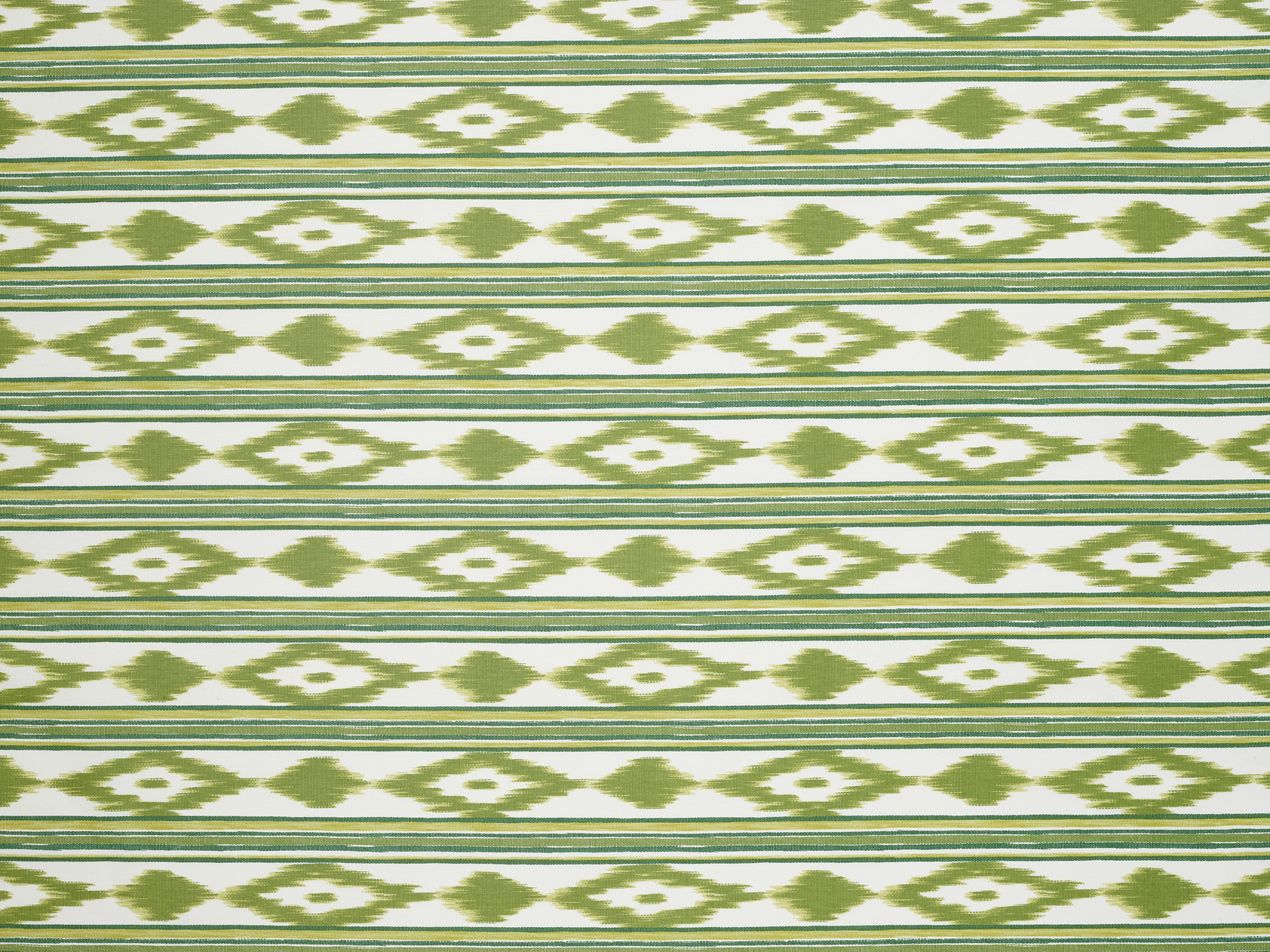A coated, cotton fabric suitable for tablecloths with a stylish, ikat striped design. This wipeable fabric has an acrylic coating which make the fabric water repellent and prevents most stains from penetrating the fabric.