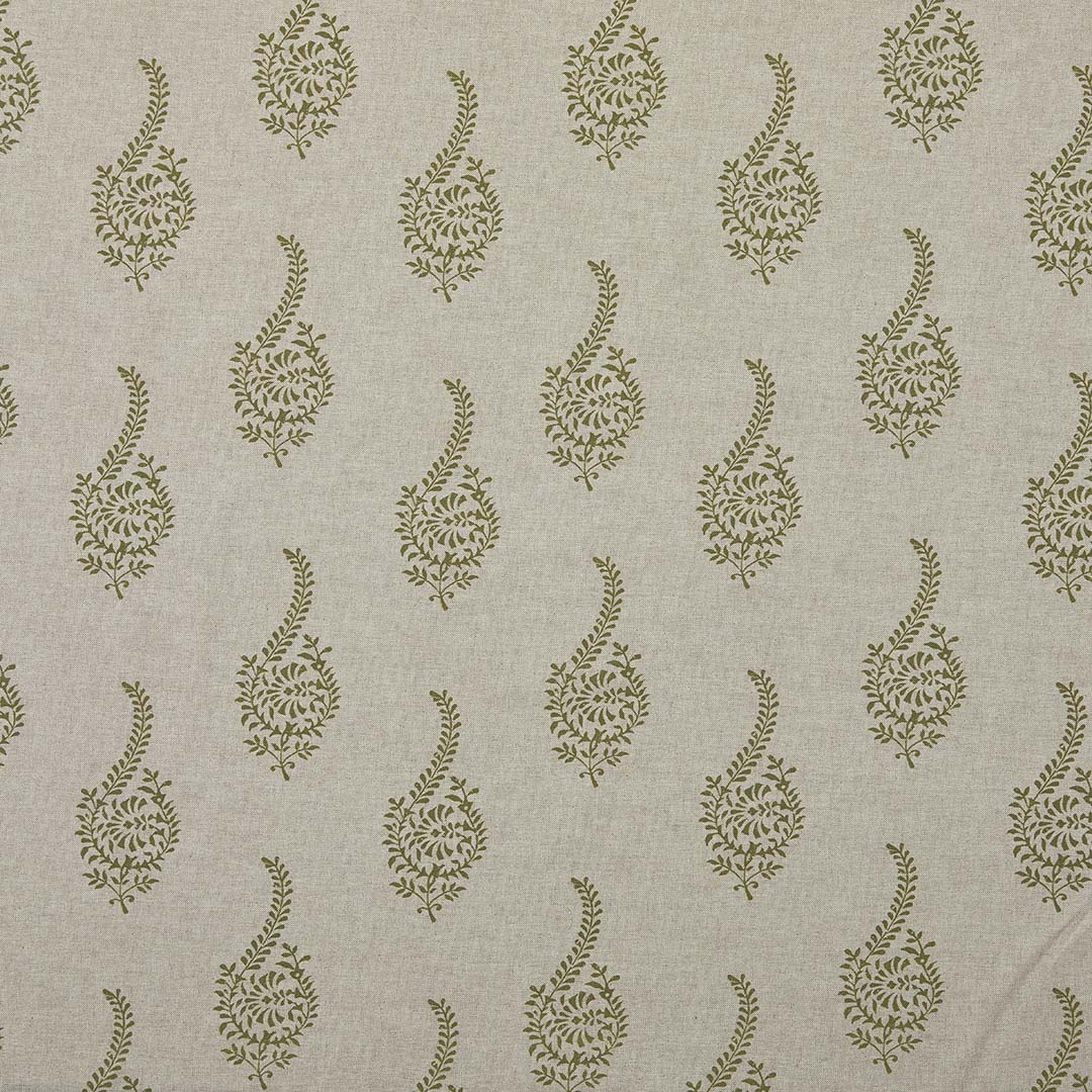 A stylish, block print style motif on a natural-coloured, linen look fabric. The larger scale pattern works particularly well with large curtains and blinds.