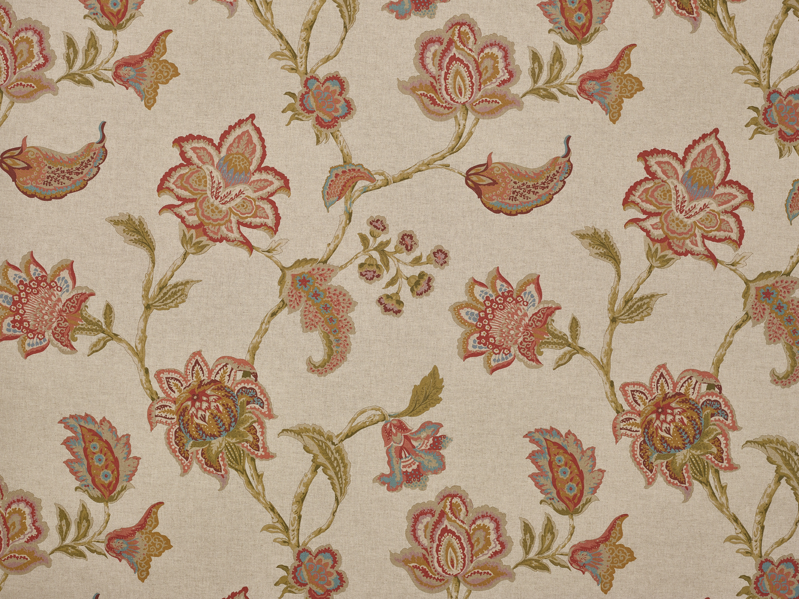 A beautiful, floral print on a linen-look base cloth. The larger scale floral works particularly well with larger curtains.
