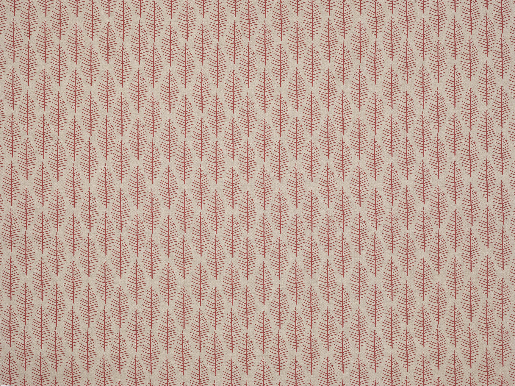 A stylised leaf motif is simply repeated across a natural coloured, linen-look base cloth for a clean, contemporary look.