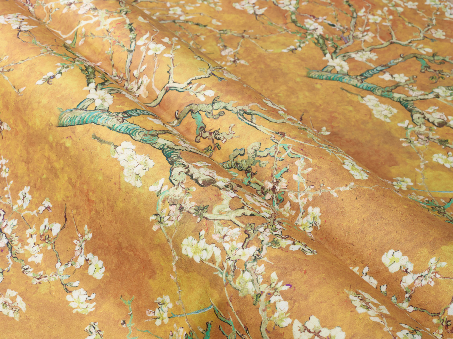 A hard wearing velvet with an oriental style design featuring delicate cherry blossom boughs on a tonal background.