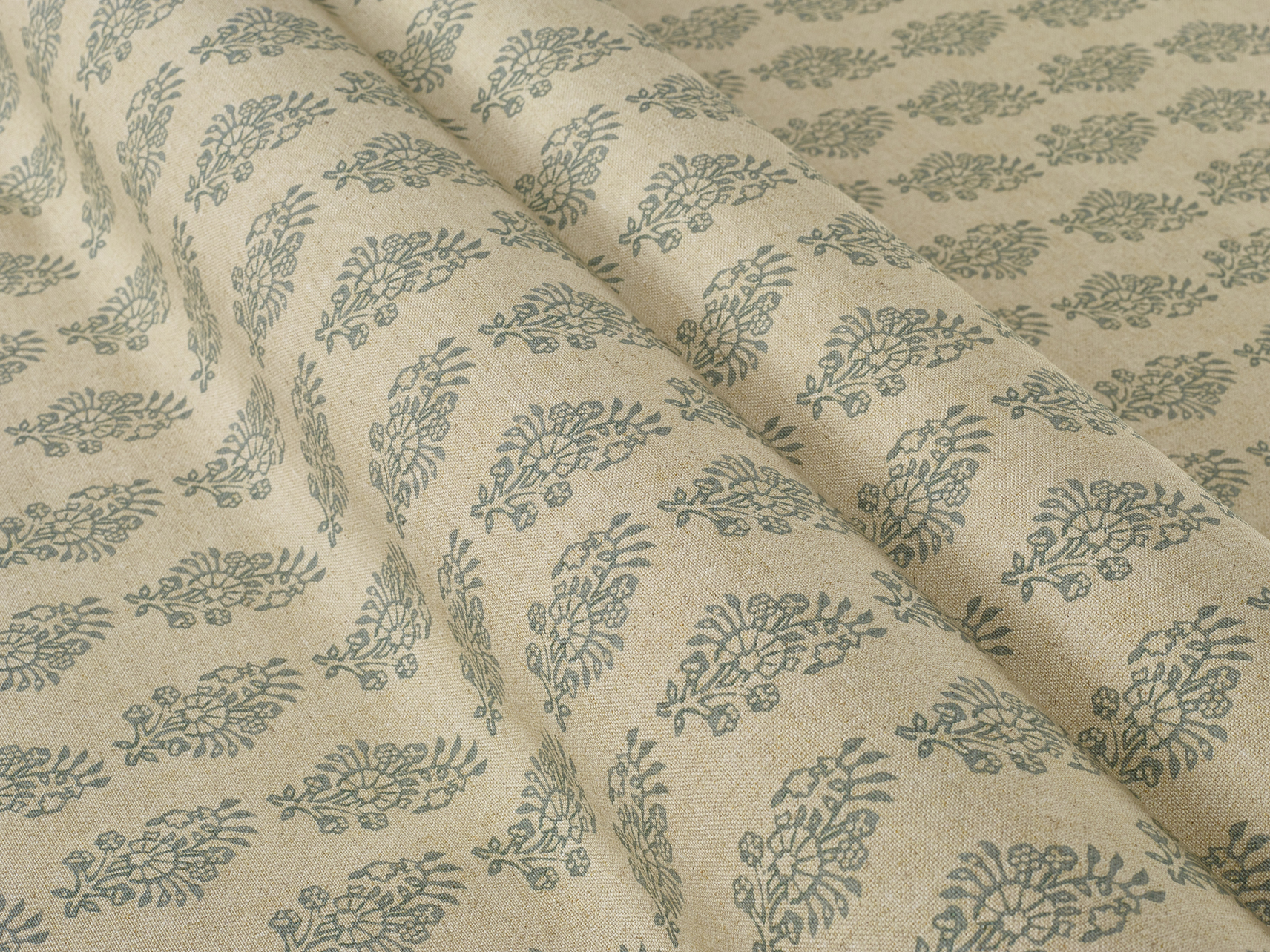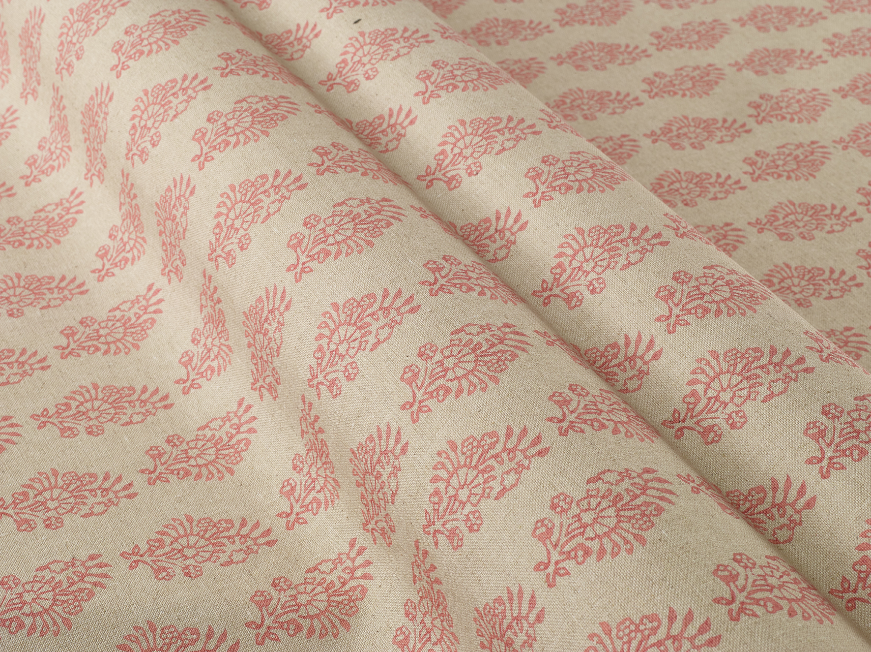 A stylised flower motif is simply repeated on a natural-coloured background for a smart and stylish look. Works equally well in modern and classic interiors.