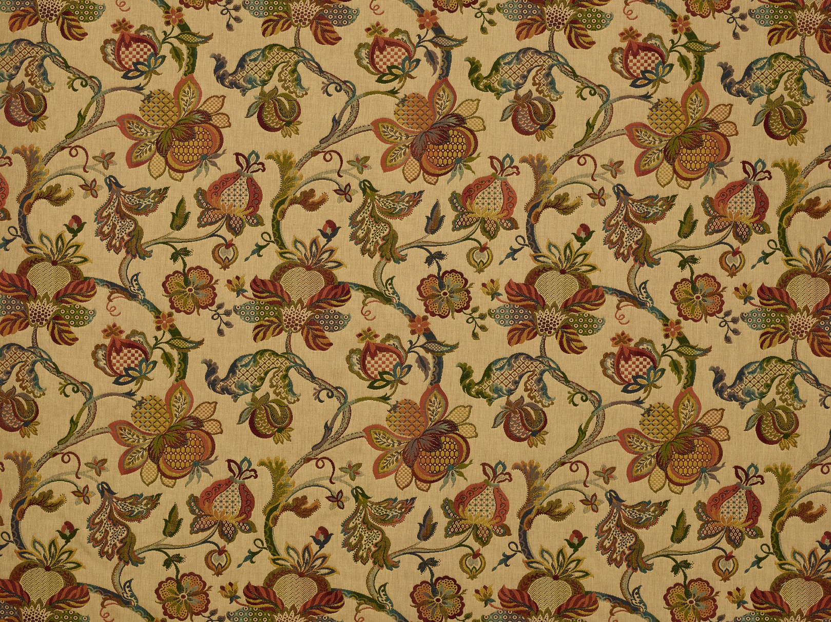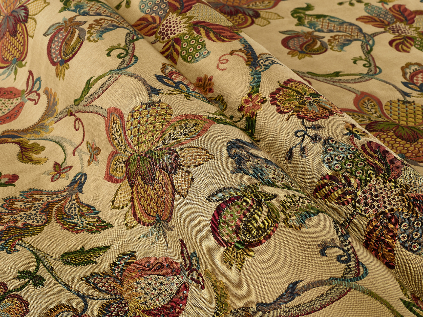 A Jacobean style, woven tapestry fabric, this fabric is suitable for upholstery and heavier weight curtains.