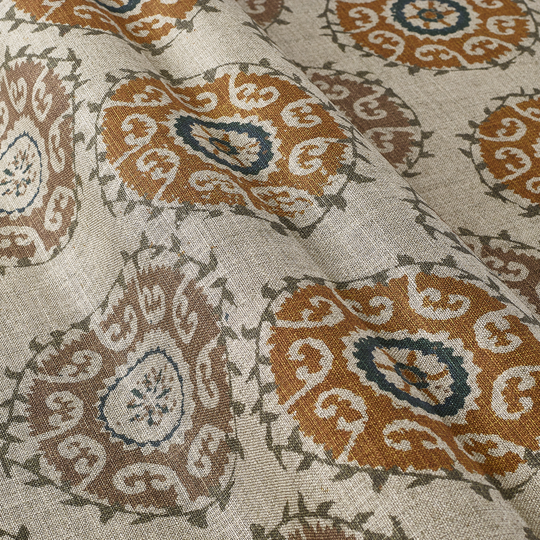 An extra-wide fabric with a striking, large and detailed circular motif. Being double the width of conventional fabric, this makes it ideal for making large curtains. See our FAQs for more information on extra wide fabric.