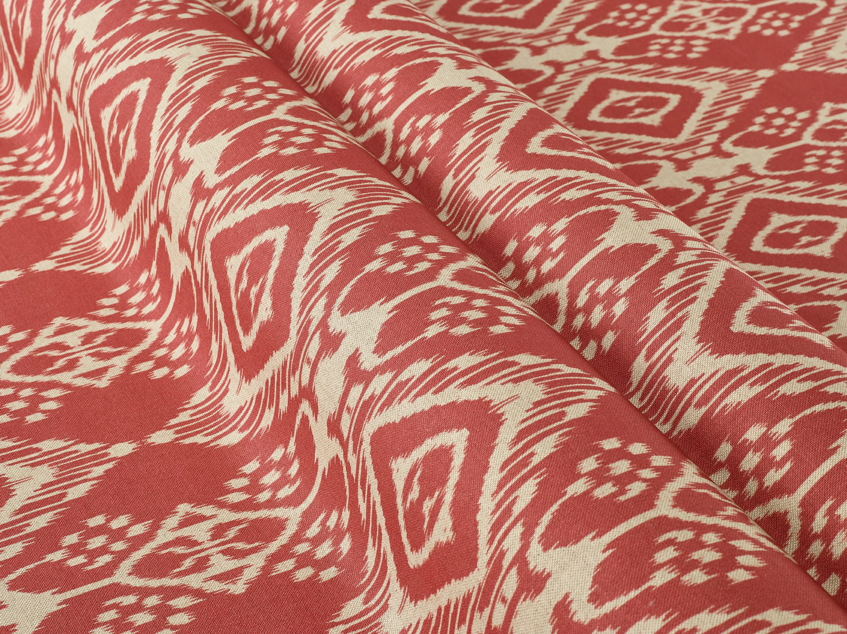 A lovely ikat style print on a linen-look base cloth.