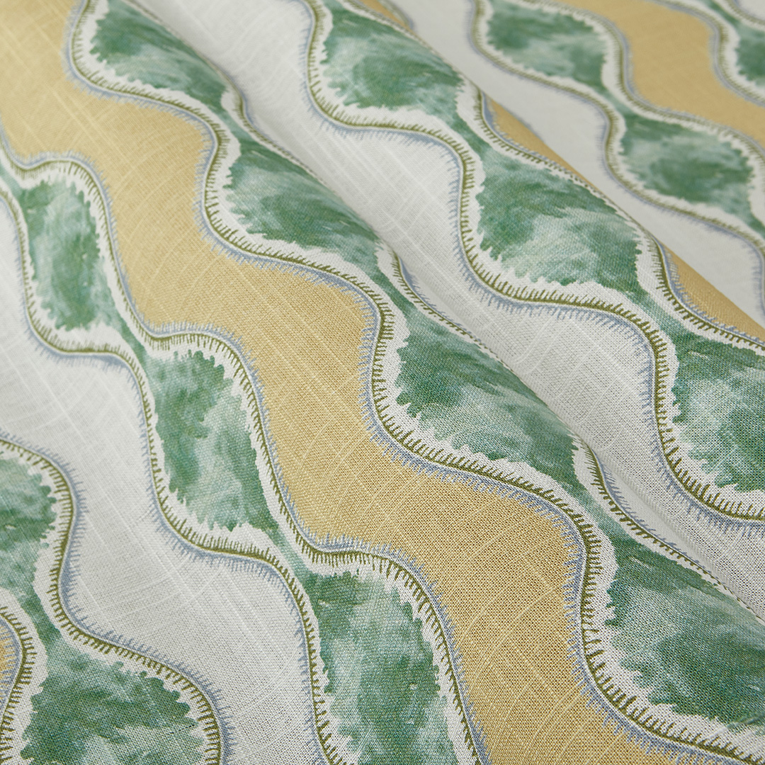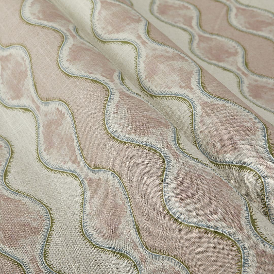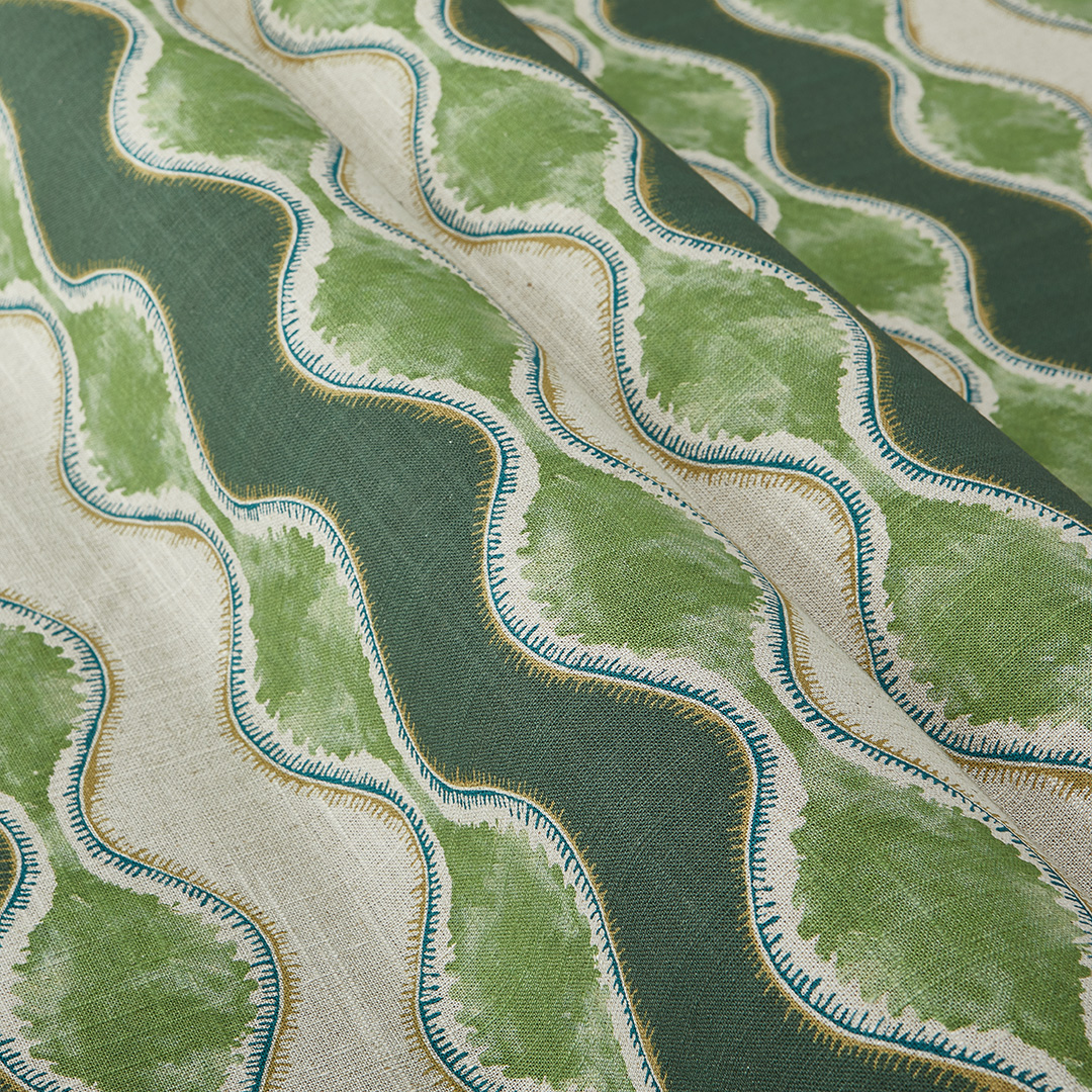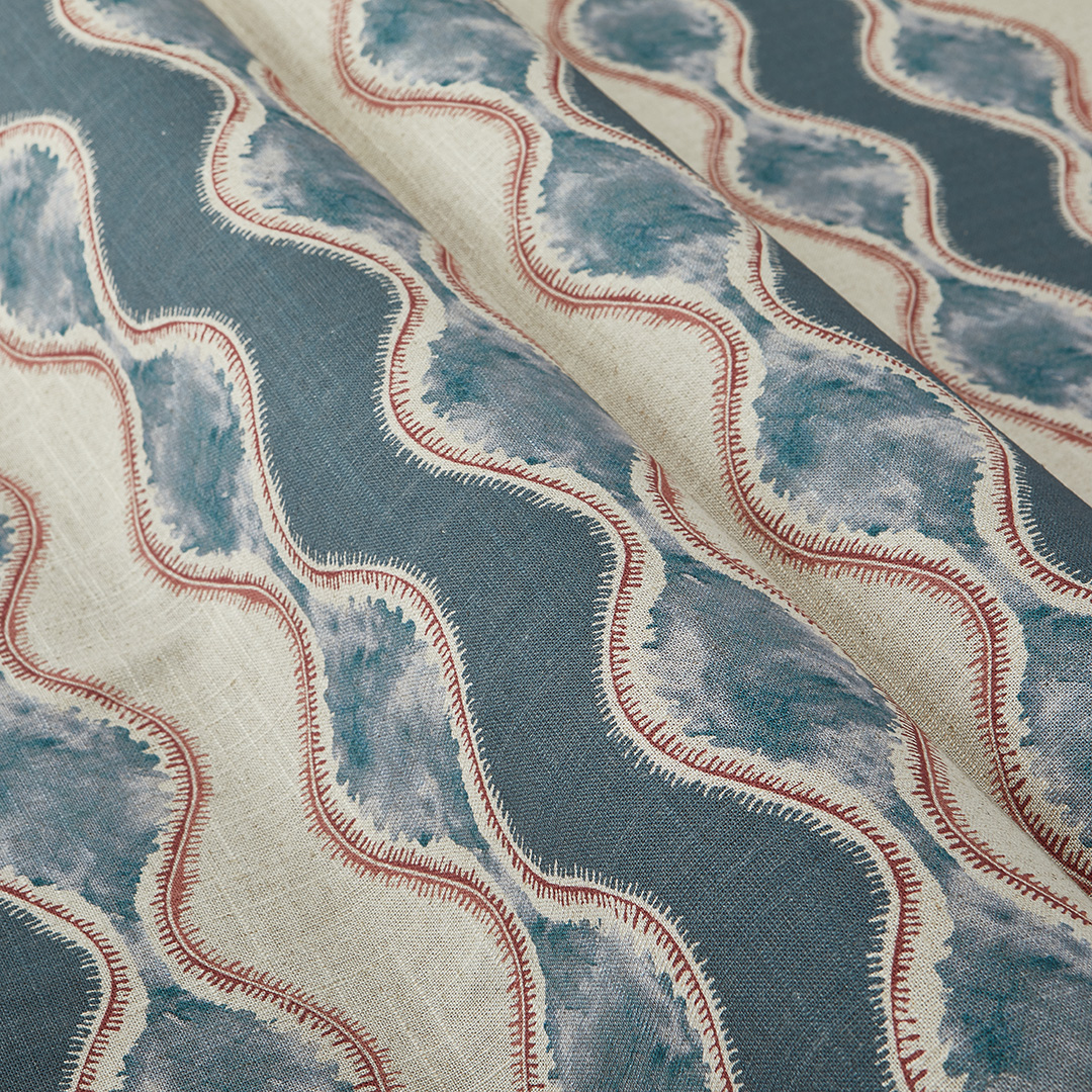 An undulating, painterly stripe printed on a soft linen mix fabric. Works wonderfully well on curtains, cushions and roman blinds too.