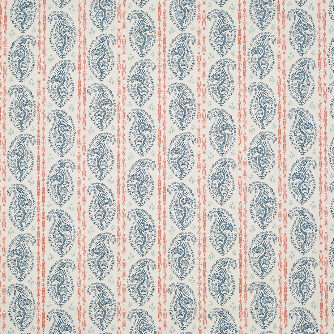 Estella Stripe II Fabric - Indigo|Coral