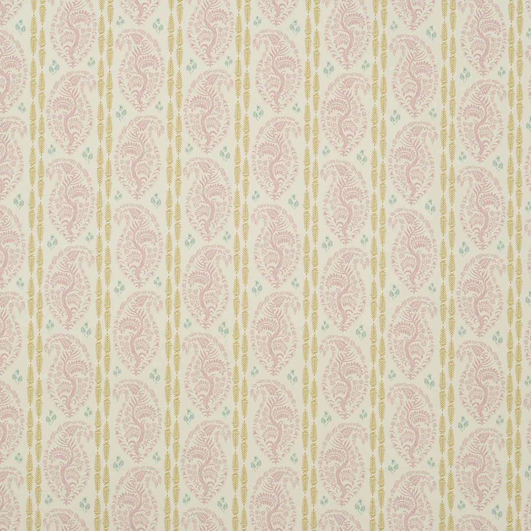A larger scale striped design featuring stylised foliage in a two-coloured print on a cream base cloth. This design is also available on a plain coloured background (see Estella Sripe) and a natural coloured background (see Estella Stripe III).